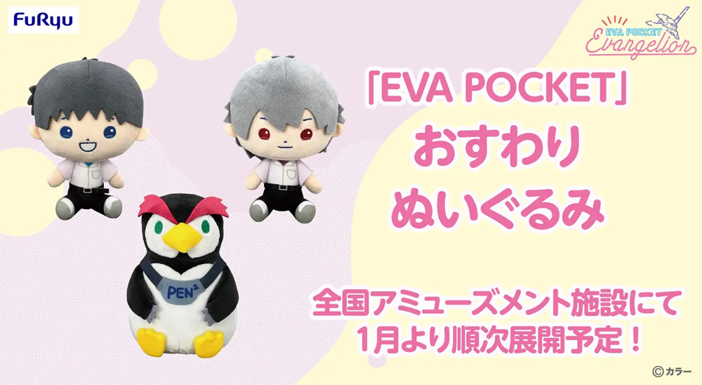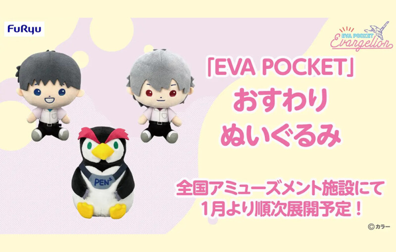フリュープライズより、「EVA POCKET」おすわりぬいぐるみが登場!
